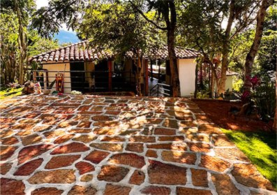 Toda la base del caney esta en piedra caliza, piedra azul y piedra Barichara roja.